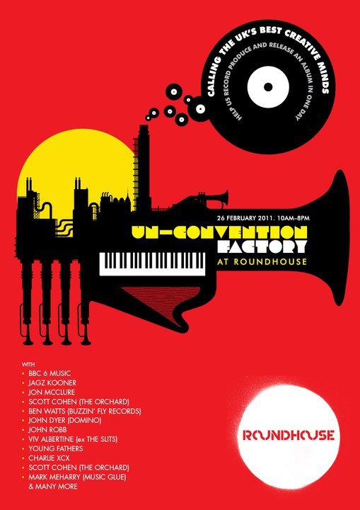 Take six special music collaborations with 12 musicians including Jon McClure (Reverend Soundsystem), Viv Albertine (The Slits), Charli XCX, Lupa (Colombian MC), Young Fathers plus many more. Add top producer Jagz Kooner, along with 80 invited music industry experts and 200 participants. Then record, produce and release an album in one day.